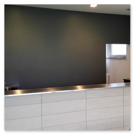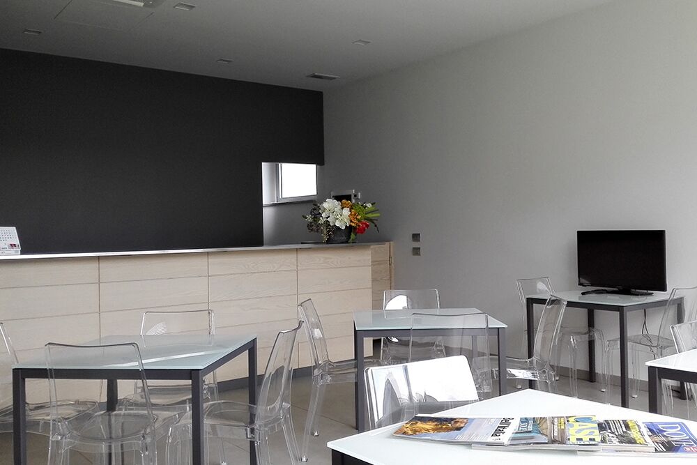 Reception - Ampio e luminosissimo locale con bancone e annesso salotto di design.