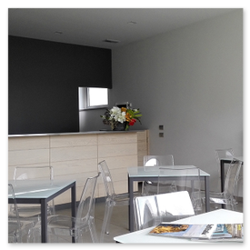 L’architettura minimalista caratterizza il suo design sia esterno che interno, con grandi vetrate, colori e arredi che permettono con la loro semplicità e sobrietà a chi entra di non avere sensazioni di disagio ma di accoglienza.