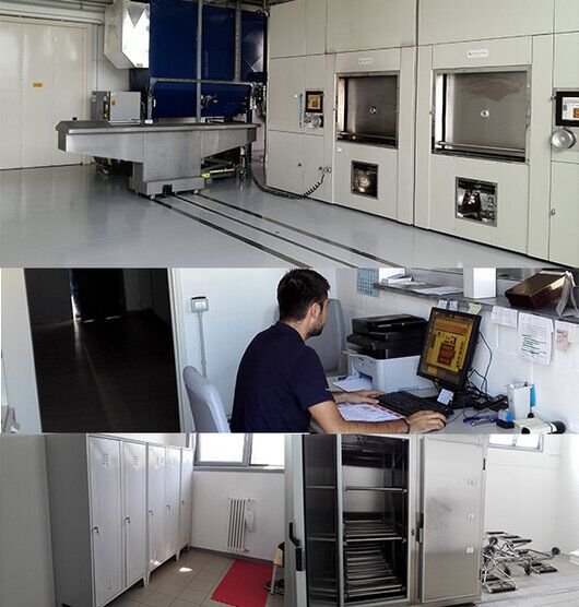 Sala Forni - questo e' il cuore pulsante del crematorio, un grande ambiente di 250mq dove sono posizionati i due forni della Facultatieve Technologies, il grande filtro e i macchinari per la lavorazione dei resti ossei calcificati del dopo cremazione. Tutti macchinari di altissima tecnologia in modo da operare nell'assoluta sicurezza sia per quanto riguarda gli operatori che per le immissioni in atmosfera che vengono costantemente monitorate..